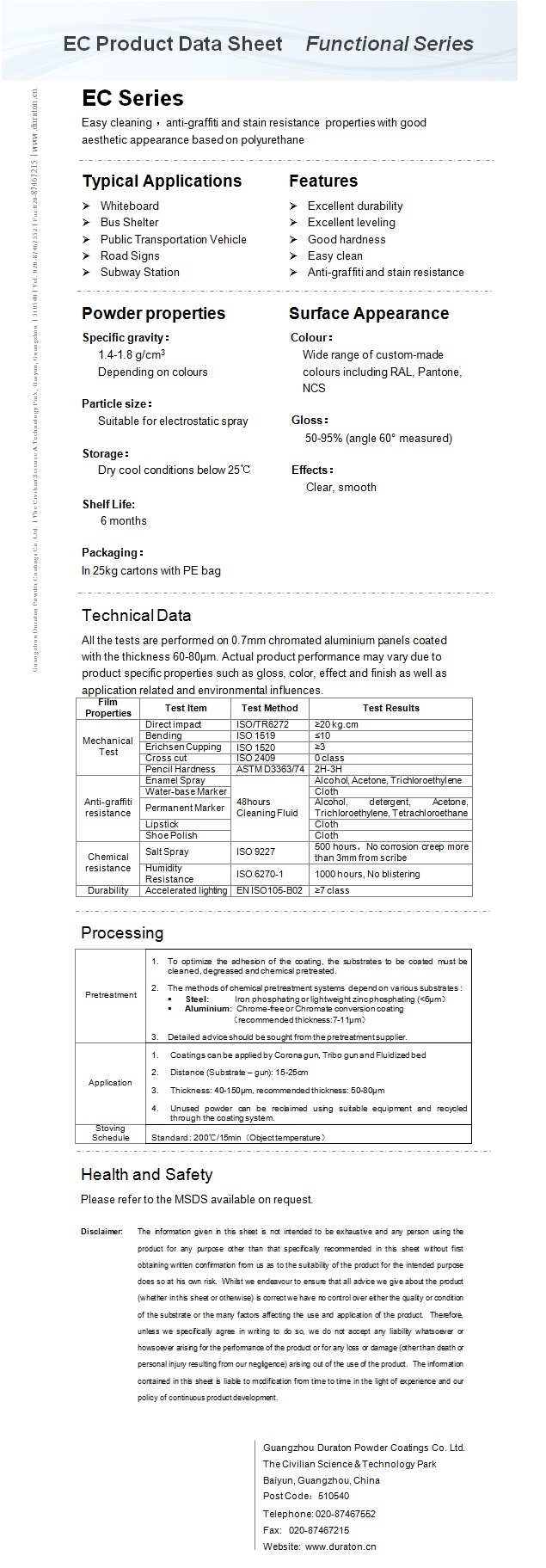 Contact Guangzhou Duraton Powder Coatings Co. Ltd.